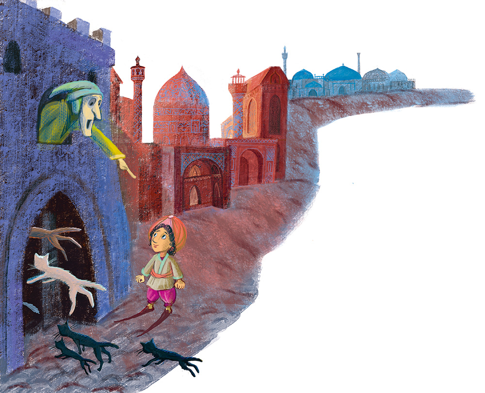 На третий день утром он увидел с вершины холма большой красивый город, украшенный флагами и знамёнами. Маленький Мук собрал последние силы и пошёл к этому городу.