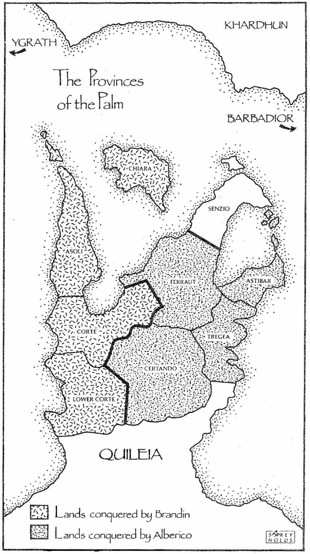 She was thirty-three years old, and somehow with the years that had slipped away so absurdly fast she was one of the powers of this palace. Which, of course, meant of the Palm. In the saishan only Solores di Corte could be said to vie with her for access to Brandin, and Solores was six years older than she was—one of the first year’s harvest of the Tribute Ships.