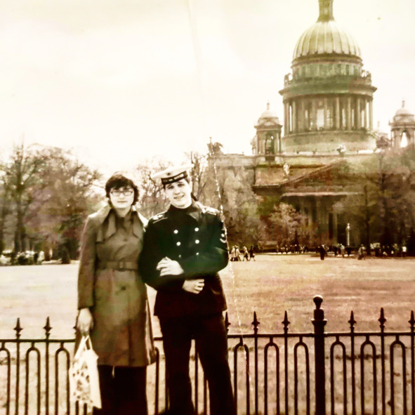 Гуляли по Ленинграду, фотографировались на фоне Петра Первого, кораблей в Неве. Вечные мои скитания, неустроенность наложили свой отпечаток на мое восприятие Ленинграда: не показался он мне таким величественным, красивым… В молодости хочется какого-то веселья, музыки, шума, гама, неформальной обстановки. А Саша ничего такого себе позволить не мог. Таков устав. Так что кроме прогулок по городу и танцев в его родном училище, развлечений у нас не было.