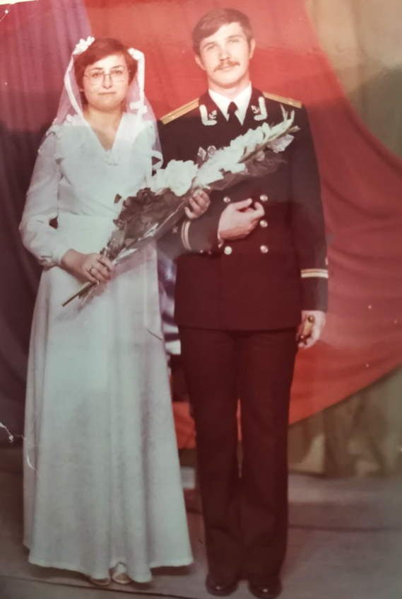 Свадебный наряд невесты составило сшитое за три дня белое платье, фата, больше похожая на легкий ореол из белых цветов и белые туфли. Все мне организовала мама: без меня заказала по меркам платье, фату, купила туфли нужного размера, нижнее белье. Все сидело хорошо. Саша предстал перед невестой в военной парадной форме. Свидетелем с его стороны вызвался быть Володя Сиверцев, со стороны невесты – моя школьная подруга Ирина Руденко. Я как-то сразу почувствовала, что Саша на этой свадьбе интересует только сам себя: когда вошел, не похвалил мой наряд невесты, хотя мы с мамой очень старались. Не уделил мне какого-то особого внимания, какое жених обычно уделяет своей избраннице. Наверное, он растерялся, волновался…