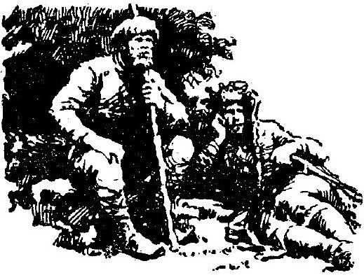 Шут Вамба и Гурт, герои романа «Айвенго», рис. В. Бундина, 1957 год