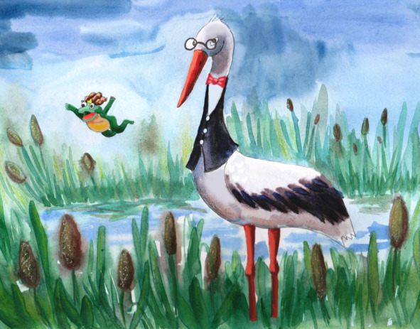 Кузьме Ивановичу ничего не оставалось, кроме как наблюдать, как лягушка Катюшка обхватила его клюв зелеными лапками, сгруппировалась и, резко оттолкнувшись, взмыла вверх, затем она кувыркнулась в воздухе и, расправив лапки в стороны, как заправская ныряльщица вошла в мерцающую на солнце воду.