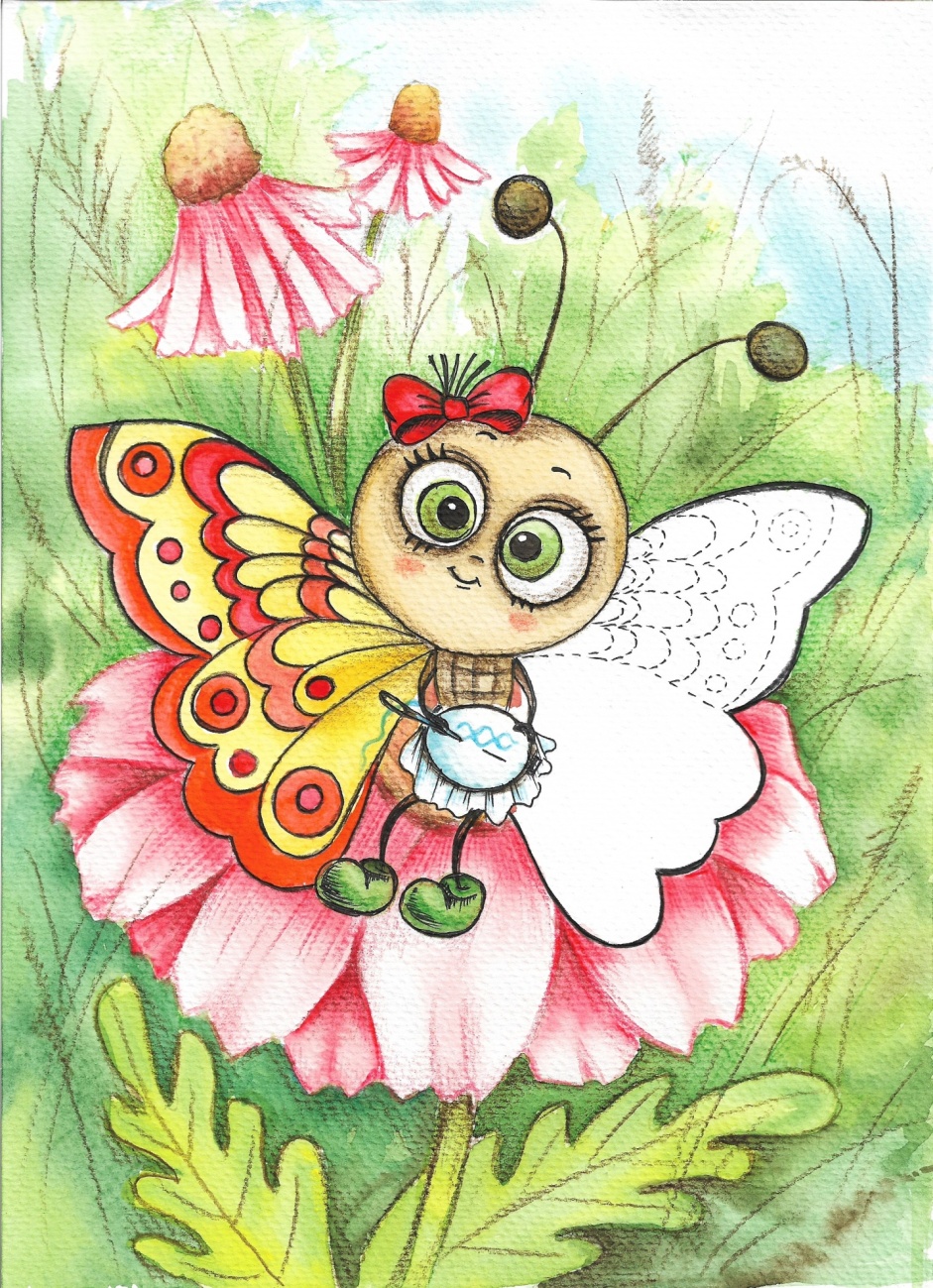 Что случилось с крылышком бабочки? Наверное, сильный ветер сдул с него всю пыльцу. Нужно помочь бабочке и раскрасить второе крылышко также, как и первое. Смотри, у тебя даже есть подсказка в верхней его части!