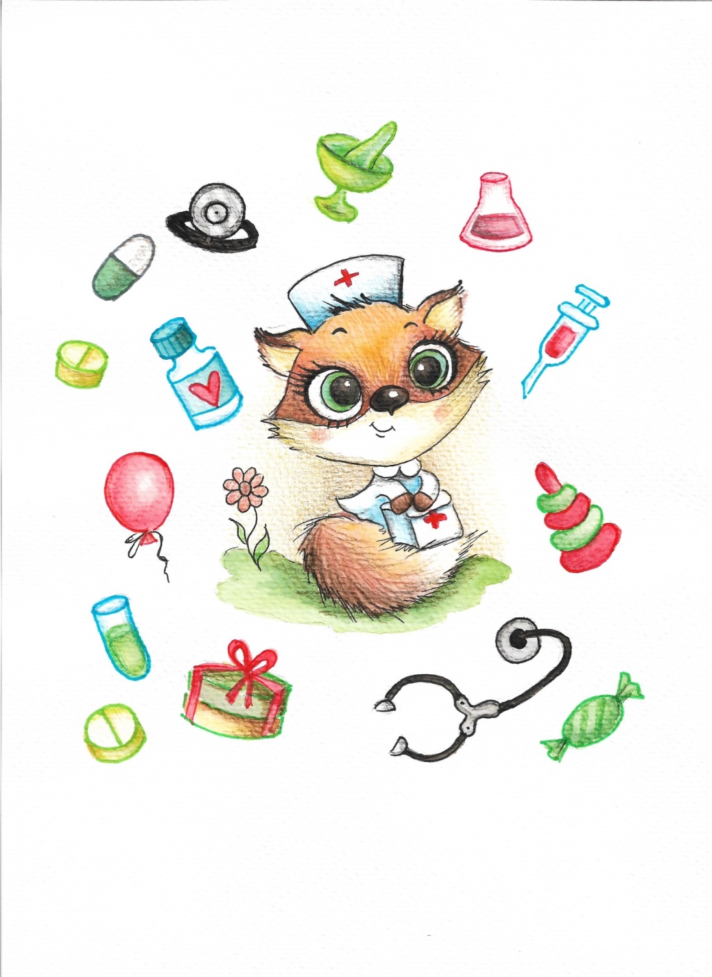 Лисенок с друзьями собрался играть в доктора, но он немного сомневается, что же положить в свой докторский чемоданчик?
