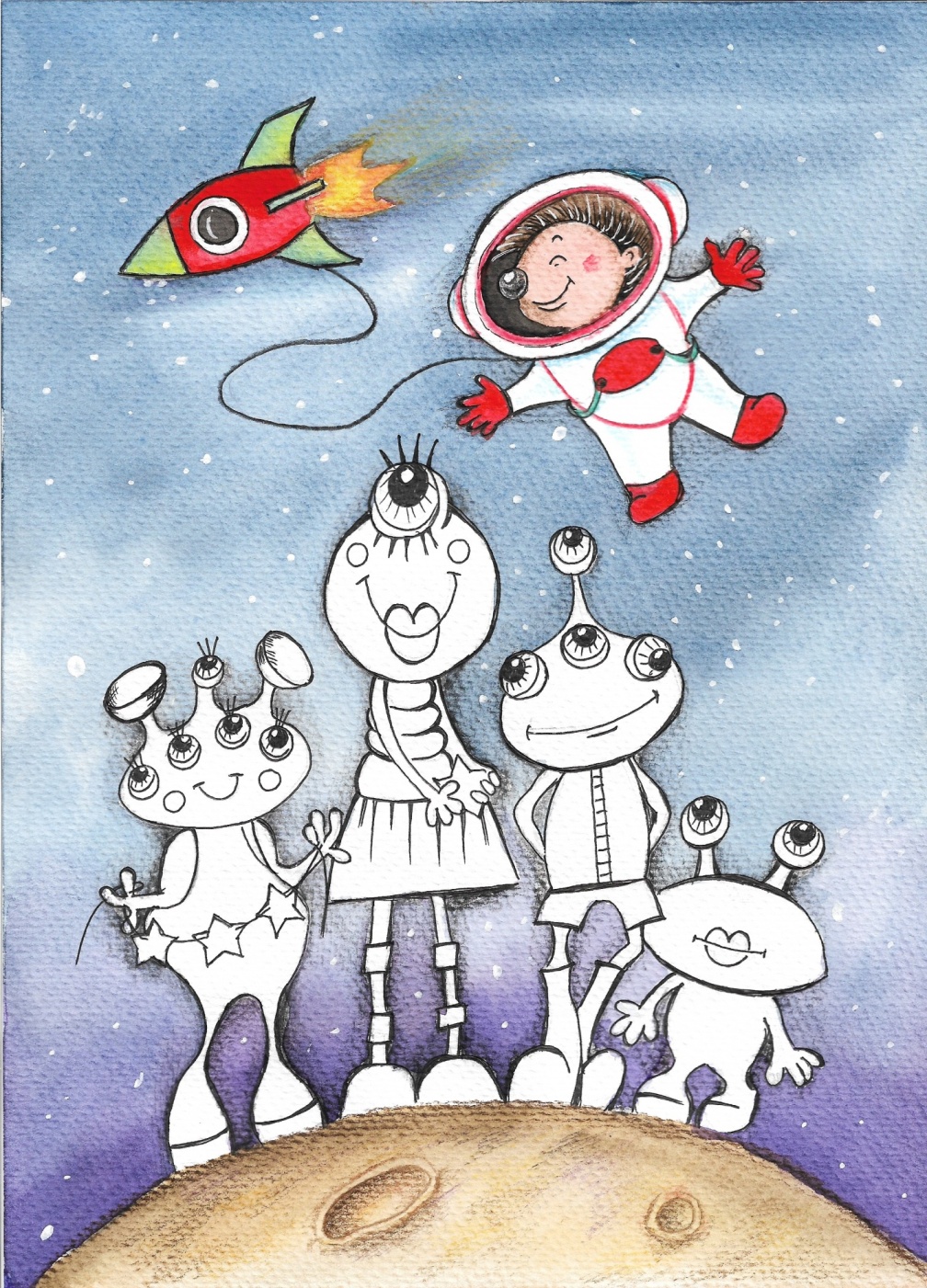 Кажется, ежонок попал на какую-то не раскрашенную планету! Нужно срочно помочь её жителям. Тем более что они рассказали ежонку, что самый высокий инопланетянин должен быть зелёным, а самый низкий синим. Тот, у которого больше всего глаз, сказал, что он должен быть красным, а самый скромный жёлтым.
