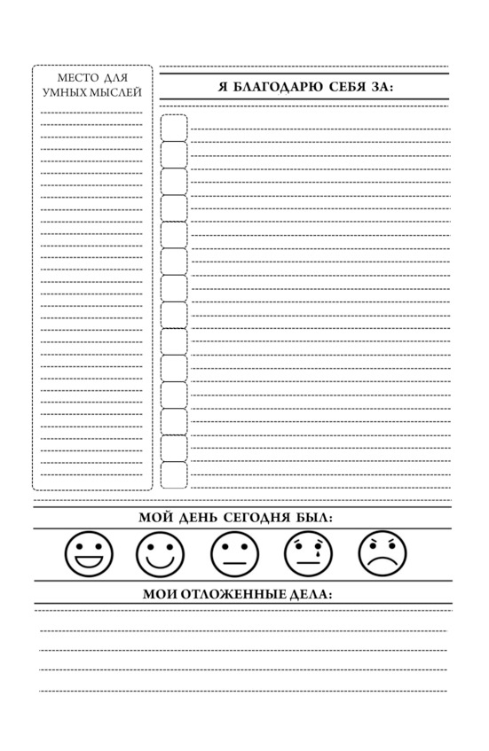 Всё мы разные, и, возможно, Ваше сознание уже готово к развитию и техника благодарности не вызовет у Вас сопротивления. Но как показывает практика, на начальном этапе сопротивление очень высоко. Но не бойтесь, подойдите к практике осознанно и если сложно сейчас сесть и заполнить дневник, начните с творческого задания дня чтобы легче его преодолеть. Мы разместили для Вас дополнительные практики внутри книги и творческие задания в конце книги. Они позволят привычке, жить в состоянии благодарности, укорениться в вашей жизнь как можно скорей!