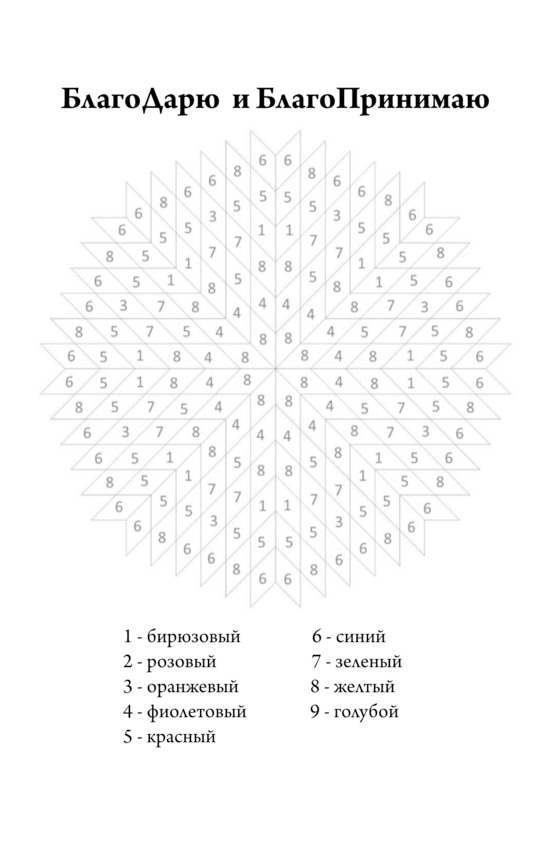 Инструкция: вспомните моменты, когда вы побеждали, когда вы превосходили самого себя, когда вы обучались и были лучшим в чем бы, то ни было. Посмотрите на мандалу, возьмите цвет, указанный в секции мандалы (внизу вы увидите перевод цифр в цвета) и начните разукрашивать мандалу, при этом радуйтесь и хвалите себя. Смотрите на себя, как на победителя. Благодарите Себя, Мир и Вселенную Здесь и Сейчас.