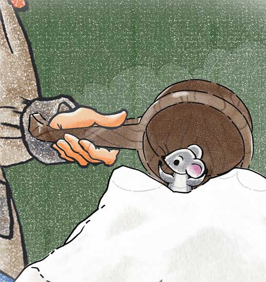 Вдруг Няня увидела, как он ожил, зашевелился, и оттуда с писком появилась Мышка, окутав все вокруг мучным туманом.