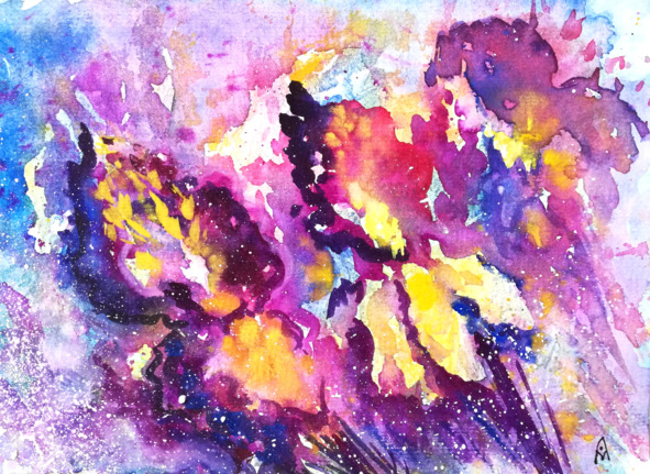 Однажды мама вышла из комнаты, и Маня, охваченная внезапным порывом, подошла к ее картине, взяла кисточку, обмакнула в краску и стала завороженно водить ею по бумаге. Она рисовала цветы. Вернее, дорисовывала то, что мама уже успела изобразить. Она макала кисточку то в синюю, то в красную, то в желтую краски, и с наслаждением наблюдала, как яркие огромные цветы расцветают на фоне ясного неба. Маня чувствовала себя волшебницей, а из-под ее руки рождался новый чудесный мир. Она и не заметила, как вернулась мама.