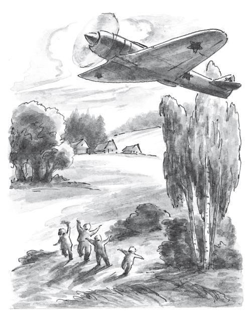 Четвёртая рота врывается на рубеж. Вот крайняя хата. Три минуты назад здесь был враг. Он убежал. В панике, в спешке. Ещё и сейчас внизу, меж кустами, перебегают вражеские солдаты. Один, два, три… пятнадцать… сорок! Стоп! Уже не сорок.