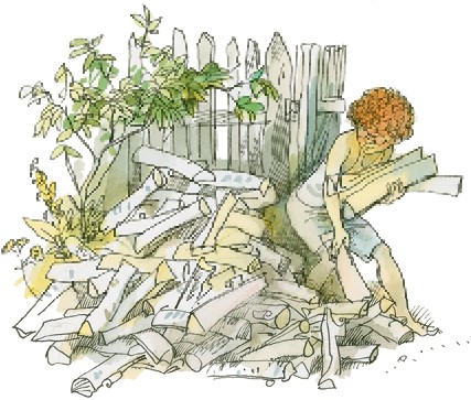 Он сунул малышу в рот горсть земляники, всучил ему в руки блестящее перо из крыла галки, и вся четверка рванулась укладывать дрова в поленницу.