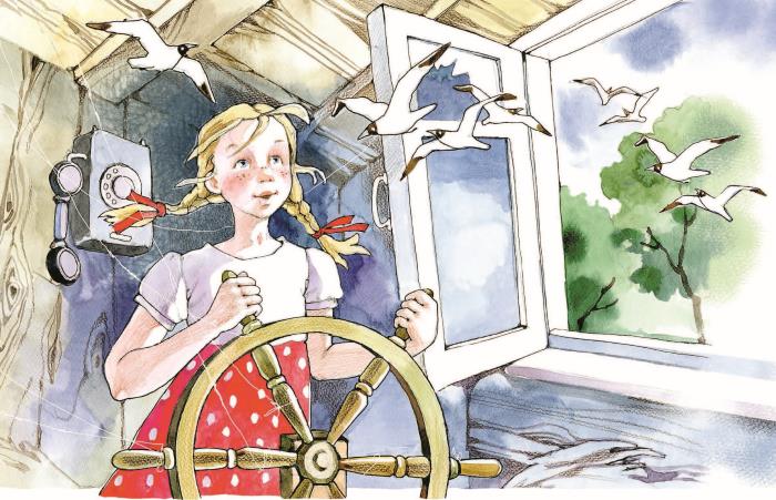 Женя заглянула через щель. Перед ней, как волны моря, колыхалась листва густых садов. В небе играли голуби. И тогда Женя решила: пусть голуби будут чайками, этот старый сарай с его верёвками, фонарями и флагами – большим кораблём. Она же сама будет капитаном.