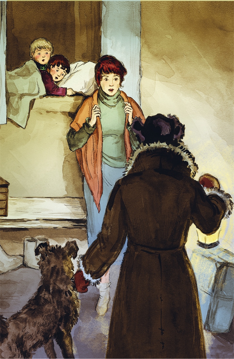 Они не слышали, как уехал ямщик и как мать, забравшись на печку, улеглась с ними рядом. Они проснулись уже тогда, когда в избе было совсем темно. Проснулись все разом, потому что на крыльце послышался топот, потом что-то в сенях загрохотало – должно быть, упала лопата. Распахнулась дверь, и с фонарём в руках в избу вошёл сторож, а с ним большая лохматая собака. Он скинул с плеча ружьё, бросил на лавку убитого зайца и, поднимая фонарь к печке, спросил: