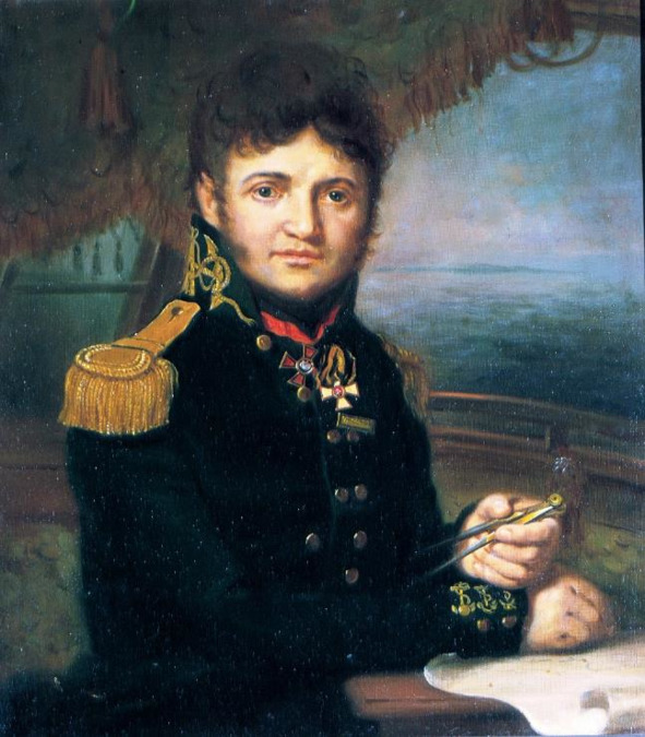 Участник экспедиции Юрий Фёдорович Лисянский (1773—1837).1810. Холст, масло. Художник В. Л. Боровиковский (1797—1825). Юрий Фёдорович Лисянский изображён в чине капитана 2-го ранга. На левой стороне груди изображён Военный орден Великомученика и Победоносца Георгия «За 18 кампаний». Чуть ниже знак о награждении золотой саблей с надписью на эфесе «За храбрость». На шейной ленте крест ордена Святого Равноапостольного Князя Владимира III степени.