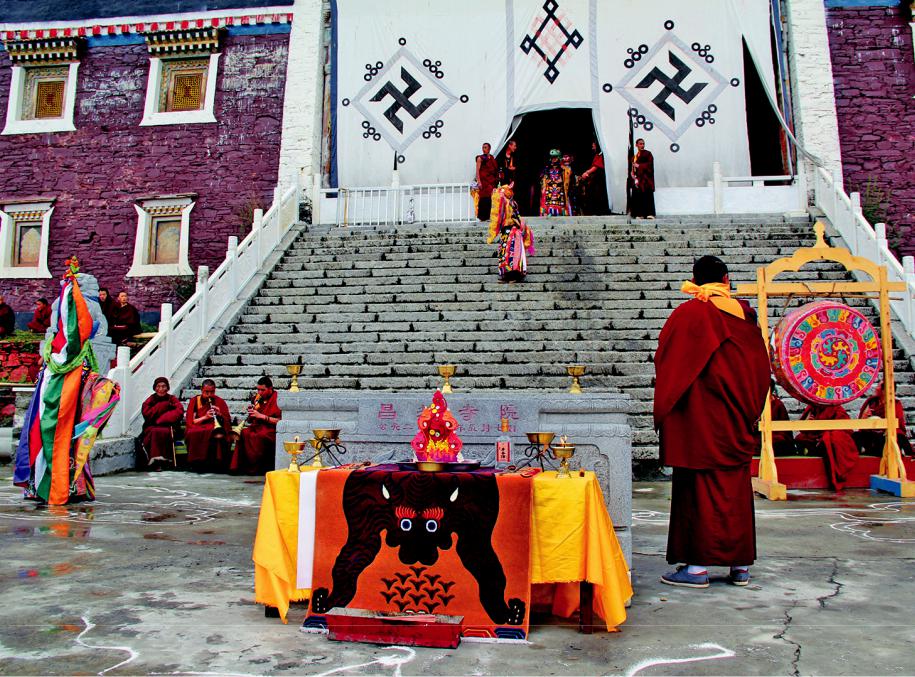 Ритуал в монастыре религии бон в уезде Цзиньчуань, префектура Аба, провинция Сычуань