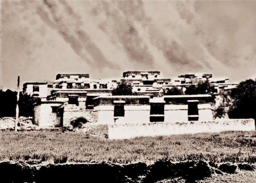 Буддийские подношения, в частности статуи Будды, были привезены в Тубо. Среди них – нерукотворная сандаловая статуя Авалокитешвары одиннадцатиликого из южной Индии, статуя Аксобхьи в возрасте восьми лет в натуральную величину, привезенная принцессой Трицун из Непала, когда она выходила замуж за Сонгцена Гампо, и статуя Шакьямуни в возрасте двенадцати лет в натуральную величину, доставленная в 641 году принцессой Вэньчэн из династии Тан (618–907), приехавшей в Тубо как невеста Сонгцена Гампо. Последние две реликвии были тогда не только самыми драгоценными предметами буддизма, но и важной вехой в распространении буддизма в Тубо на государственном уровне. Предназначение этих трех статуй было четко изложено в нескольких тибетских исторических книгах. Например: «Три статуи Будды были соответственно из Тяньчжу, Непала и Китая, то есть из тех мест, где процветал буддизм Махаяны. Итак, чтобы продвигать Махаяну в «стране снегов», необходимо с большим почтением и усилиями привезти три статуи в Тубо»[10]. Эта цитата доказывает, что для людей Тубо в то время три статуи означали расцвет Махаяны. Следовательно, для того чтобы создать статуям соответствующее обрамление, царство не жалело усилий и строило крупные буддийские храмы. Правитель Тубо сделал все возможное, чтобы возвести великолепные строения и достойно разместить статуи, тем самым положив начало распространению буддийской архитектуры в Тубо.