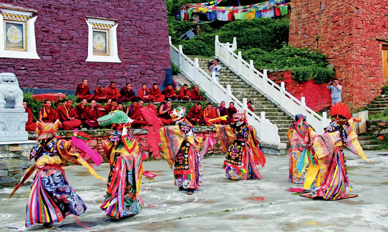 Религиозные танцы в монастыре. Уезд Цзиньчуань, префектура Аба, провинция Сычуань