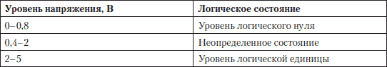 Таблица 1.2. Уровни логических сигналов на входе цифровых ТТЛ-микросхем
