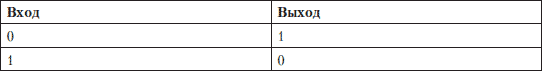 Логический элемент «НЕ»Инвертор изменяет значение входного сигнала на прямо противоположное значение. Эту функцию можно записать в виде таблицы истинности. Вход у такого логического элемента один, и таблица истинности состоит только из двух строк.