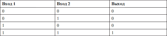 Таблица 1.4. Таблица истинности схемы, выполняющей логическую функцию «2И»