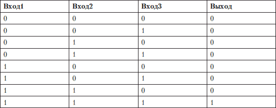 Таблица 1.5. Таблица истинности трехвходовой схемы логического умножения «3И»