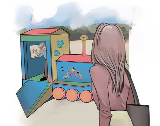 Тем сильнее было ее изумление, после того как она промчалась пару километров и совершенно без сил остановилась на какой-то детской площадке. Из красного паровозика выглянул тот, кто выдавал себя за мальчика Митю.