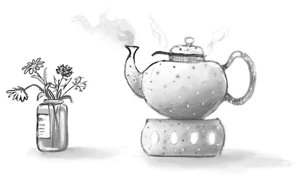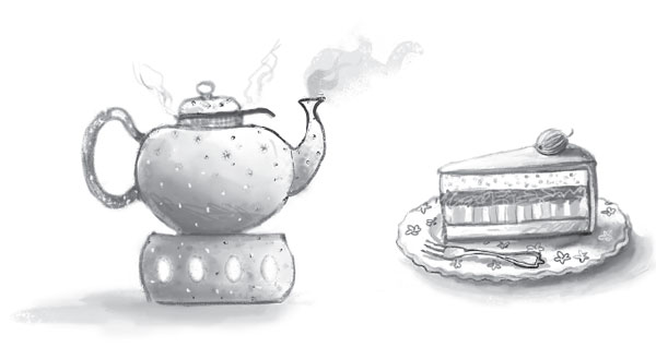 Я растерянно взглянула на два куска лимонного торта рядом с чайником, из которого валил пар, и букетом полевых цветов.
