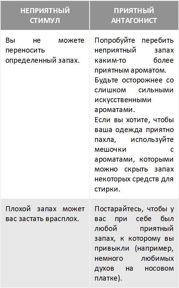 Его реакция была преувеличенна? Возможно. Но я его понимаю, потому что и сама не могу переносить некоторые ароматы. Именно поэтому я всегда ношу с собой шаль, опрысканную духами, а в моей сумочке лежит небольшая упаковка тайской мази от простуды. Где-то воняет? Я сразу же мажу мазью нос, а лицо опускаю в шаль. Из-за этого многие думают, что я постоянно простужена, но – нет. Просто от плохого запаха я моментально теряю равновесие.