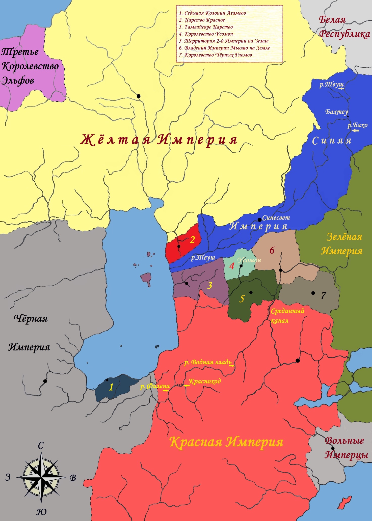 – Совершенно верно, мой господин, – посланник оперся на трость и утер выступивший на лбу пот клетчатым платком. – Более того, армада главы царствующего дома Верховной Матери Гнур, по нашим сведениям, пересекла Центральное море и осадила портовые города Черной Империи, а флот царевича Иртариба сжег главную верфь Царства Красного. Вероятно, имперская разведка уже докладывала вам об этом, мой господин.