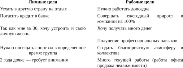 Для того чтобы вам было легче сформулировать свои цели, приведу два столбика, что пишут люди на тренингах. Первый столбик личные цели, второй – рабочие.