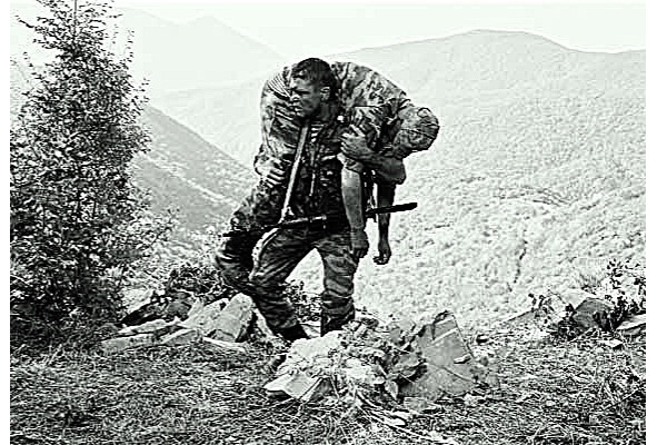 Правда, в данном конкретном случае, – при разборе боя у высоты 217.0, впоследствии немного подкузьмили показания чеченского «языка», взятого чуть позже описанного боестолкновения. Ведь тогда разведчики успели по рации вызвать две «вертушки». Те быстро прилетели и обнаружили двух боевиков, которые двигались прочь от означенной высоты, да ещё тащили на себе тела убитых товарищей. Бородачей обстреляли с воздуха, после чего на место прибыли бойцы сибирского ОМОНа и обнаружив среди беспорядочно разбросанных мёртвых тел одного живого, раненного в ногу, захватили его в плен и доставили в штаб. Он то и рассказал, как всё было на самом деле.
