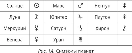 Конечно же, для уверенной работы астрологу необходимо безупречно знать символы всех планет. Они показаны на рис. 1.4.