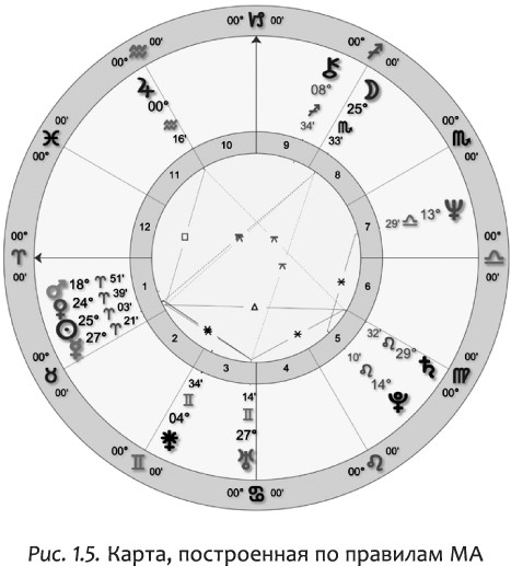 МА в настоящее время не использует в своей работе лунные узлы, Лилит, жребии. Но учитываются средние точки, о них мы расскажем в отдельной главе.
