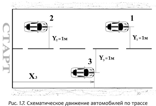 Теперь предположим, что две машины находятся от центральной разделительной линии ровно в одном метре слева (автомобили 1 и 2 на рис. 1.7). В этом случае можно сказать, что между ними образуется аспект параллели, и не имеет значения, на каком расстоянии они от старта. А если одна из машин отклонена на один метр влево (автомобиль 1 или 2 на рис. 1.7), а другая – на столько же вправо (автомобиль 3 на рис. 1.7), это будет аспект контрпараллели. В принципе, для понимания склонения и аспектов склонения на повседневном уровне этого достаточно.