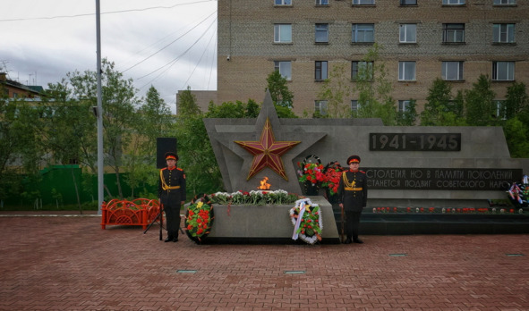 На центральной площади наткнулись на мероприятие посвященное 22 июня. Зажжён вечный огонь. Стоит почётный караул с охолощенными СКС. Дети выпустили воздушные шары в виде белых голубей. Над площадью кружит и стая домашних голубей.