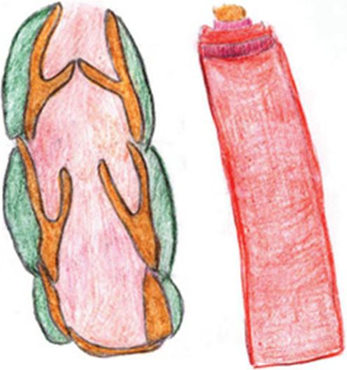Если стенки кровеносных сосудов по своей структуре напоминают решето, то стенка инициального (начального) лимфатического сосуда или лимфатического капилляра выглядит как черепичка: одна клеточка немного заходит на другую. К каждой клетке лимфатического капилляра крепятся «тросики» – якорные филаменты. Они прикрепляются к каркасу межклеточного пространства. (Рис. 4)