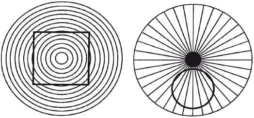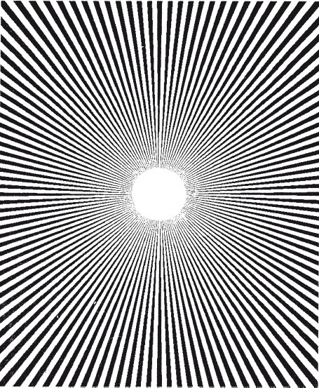 Рис. 1.8. Рисунок с лучами, исследованный Мак-Кеем. Не вызывает ли нарушение работы мозга перенасыщенность этого рисунка? Или близко расположенные линии стимулируют систему восприятия движения изображение/сетчатка вследствие небольших движений глаз, смещающих изображение на сетчатке? Если после рассмотрения этого рисунка перевести взгляд на пустую стену, то возникает эффект последействия, похожий на движущиеся зерна риса. Подобное явление возникает после наблюдения за движущимся объектом при «эффекте водопада». Узоры из изогнутых линий могут переливаться на фоне последовательных образов