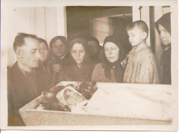Похороны бабушки. Справа налево, Кока, сестра Руфа, мама, ее двоюродная сестра Надежда, дочь Симеона Никифоровича, соседки, отец.