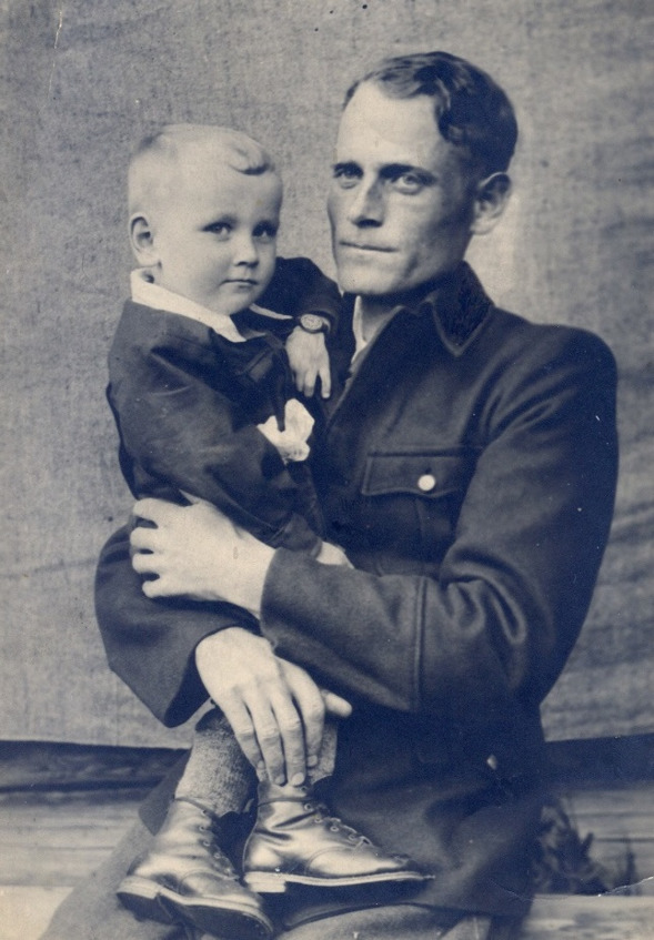 Я с отцом. Примерно три года. Показать часы нужно было обязательно. Достаток. Со взглядом, наверно, что-то делали.