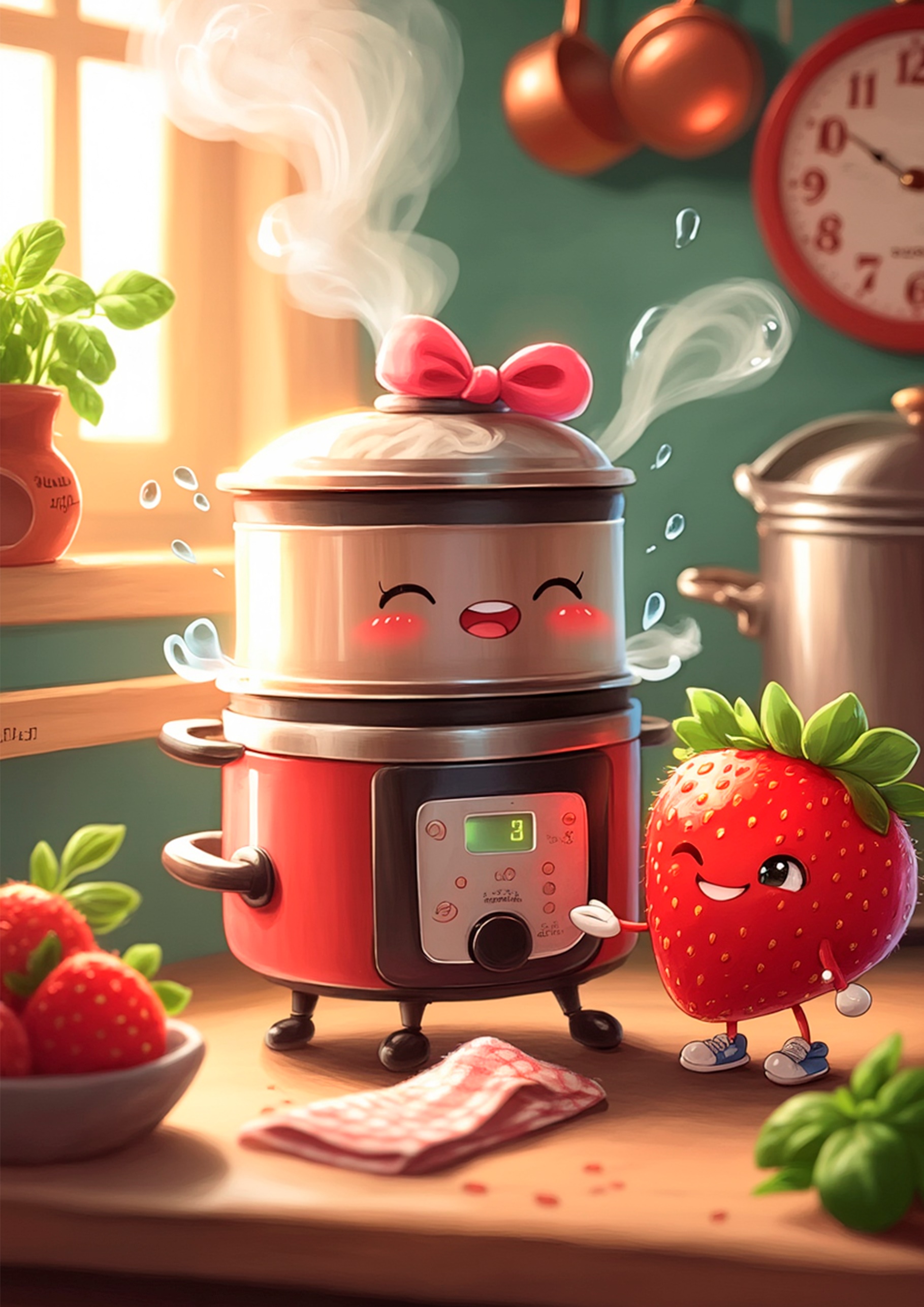 На холодильнике лежала клубничка Виктория. Она скатилась к Варе: "Варенька! Остановись!"