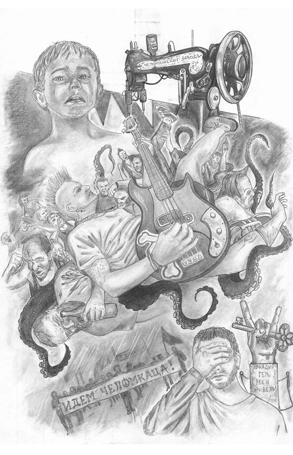 "Нажрался перед концертом, обезьяна! Дать бы ему по сопле с оттяжкой!" – страстно мечтает тур-менеджер, но помимо худосочного Фауста в гримёрке расположился внешне спокойный, но исключительно опасный в запое барабанщик Саня Романов (сценический псевдоним – Саурон)… Вдруг тур-менеджер замечает, что Архангел (Аркадий Гель, автор всех восемнадцати хитов молодой северностоличной панк-группы "Невыдуманные Персонажи") – пристально смотрит прямо в лоб ему. "Как будто прицеливается! Или приценивается?.." – неожиданно для себя сочиняет каламбур тур-менеджер и – от греха – делает шаг назад.