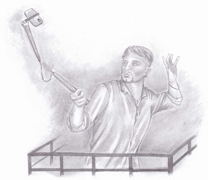 "Надо бы её отщипить. Но как? Посредством пальцев или просто сдуть? А может, она наберёт должную массу и под воздействием гравитации – сама отслоится?.." – это рассуждает Фауст (вне сцены – Вася Устинов).