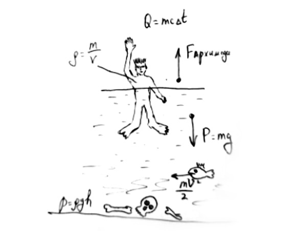 Закон Гука расскажет о том, насколько сильно прогнется стол, когда мы поставим на него баклажку с водой и выдержит ли вообще такую нагрузку. Но в скором времени появится свободное время и благодаря закону сохранения импульса мы полетим в отпуск на реактивном самолете. Дальше будем купаться и закон Архимеда не даст утонуть в море.