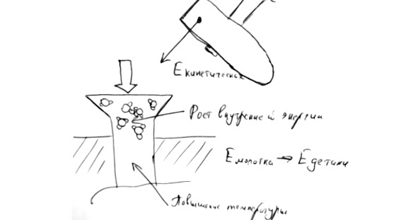 Рис.11. Превращение энергии при ударе шляпки гвоздя