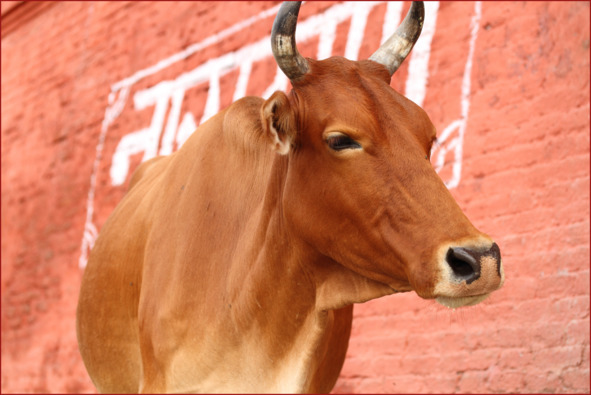 Следую дальше. Неспешная, мутная речка Багмати слева – священная река для индуистов и буддистов. Навстречу неспешно бредут коровы.