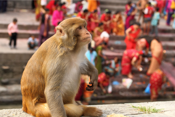 Со стороны построек иногда доносится грохот, будто удары в большой барабан. Это обезьяны прыжками передвигаются по крышам, покрытым листами жести. Прогибаясь под тяжестью животных, они и издают эти гулкие звуки.