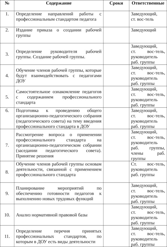 1.2. План заведующего и старшего воспитателя по подготовке к применению профстандарта