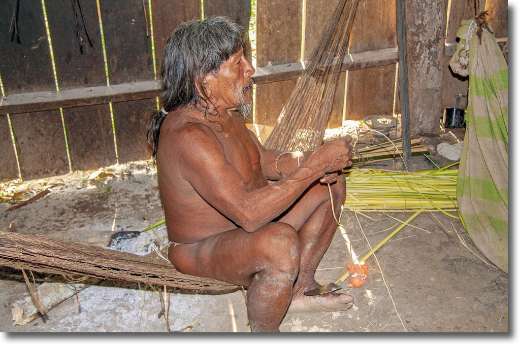 В просторных хижинах не было внутренних перегородок и мебели. Кое у кого попадались самодельные столы. Из домашнего скарба – только гамаки да алюминиевая посуда. Ни шкафов, ни каких-либо приспособлений для хранения одежды. Похоже, то, во что некоторые из них были одеты, это всё, что у них было.