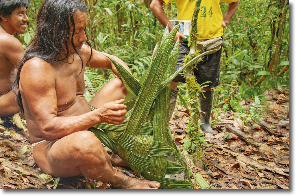 Мы шли около часа, пока не нашли нужные лианы, оплетающие высокое дерево и скрывающиеся под самым сводом. Один из индейцев проворно влез на десятиметровую высоту и начал срубать молодые побеги лиан. Когда было нарублено достаточное количество, гуарани сели кружком и затянули свои песни. Одни из них состругивали кожуру с лиан, другие проворно соорудили из листьев пальмы корзины для переноски этой стружки.