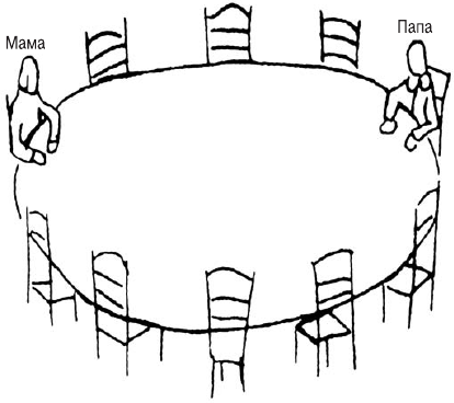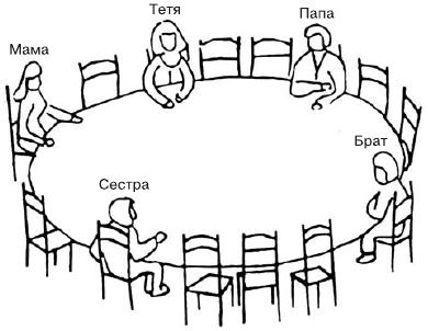 4. А теперь размести несколько человек и себя вокруг этого стола. Обозначь их родственные отношения (мама, папа, брат, сестра) или друг, товарищ, одноклассник.